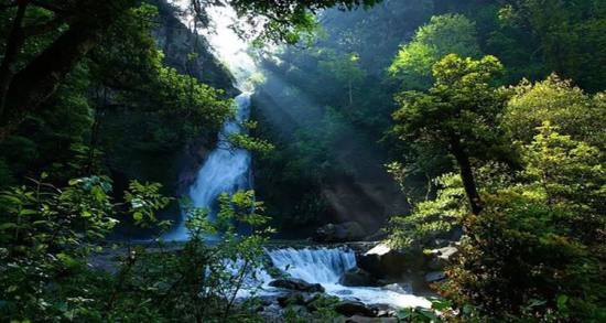 神農(nóng)谷國家森林公園內(nèi)森林茂密,小氣候環(huán)境優(yōu)越、空氣清新、負(fù)離子含量高,更能促進(jìn)人體身心健康。澗深谷幽,一巨石雄踞路頭,繞石而進(jìn),豁然開朗,瀑布自48.2米的絕壁上轟鳴而下,水珠飛濺,如滾珠噴雪,迷霧茫茫,凝視上端,有如輕紗飄蕩,又如煙霧翻滾,其趣無窮。